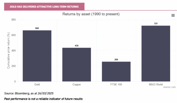 Gold has delivered a particularly strong performance in recent years, reaching record highs amid macroeconomic uncertainty and escalating geopolitical tensions. A key driver has been increased purchasing by central banks, particularly in China, as they seek to reduce their reliance on US dollar reserves.