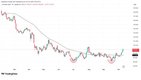The rally in markets has run out of steam this week despite positive headlines coming from the Middle East about a ceasefire deal between Hamas and Israel going into effect on Friday. The restraint isn’t entirely surprising: these deals often lack a meaningful follow-through, US equities are stretched after a powerful run, and with key releases delayed by the government shutdown, there’s less fresh macro to justify pushing higher. By contrast, Europe and Asia have led this week’s gains as domestic catalysts lifted sentiment—another reminder that leadership is rotating rather than broadening.